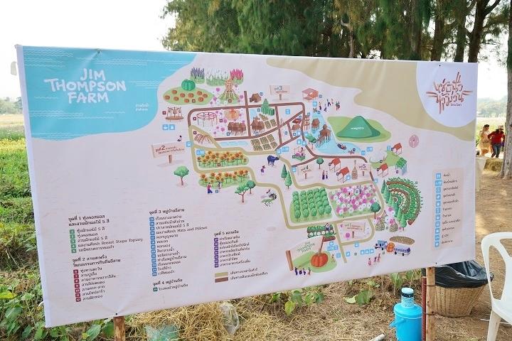 ジムトンプソン・ファーム内には、アトラクション(見所)が5つ用意されており、無料のバスに乗って見てまわることができますし(※往路のみ。タイ語のアナウンス有)、体力と時間に余裕のある方なら、歩きながら見てまわることもできます。今回、ひまわりが既にうなだれていたためか、入口からひまわり畑を越え、一気にカボチャの展示されている所まで連れていかれましたが、その他は徒歩で出口まで、約3時間かけて戻りました。帰宅してから気付きましたが、アトラクション5のJim’s Market(市場)に立ち寄り損ねてしまった気がしますが、出入口付近にあるお土産コーナーには寄りましたが品数少なめで、購入に至らず(^^;)