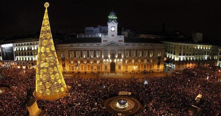 マドリッドの Puerta del Sol(プエルタ・デル・ソル)の時計台に合わせ、ブドウを1粒ずつ食べます。