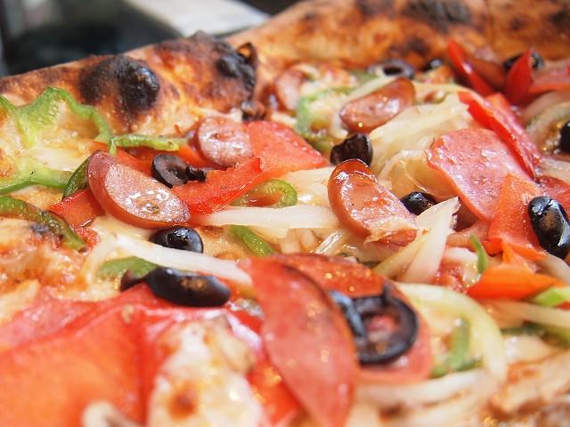 スペシャルはサラミ、オリーブ、ピーマン、玉ねぎ、チーズ、ソーセージ。
