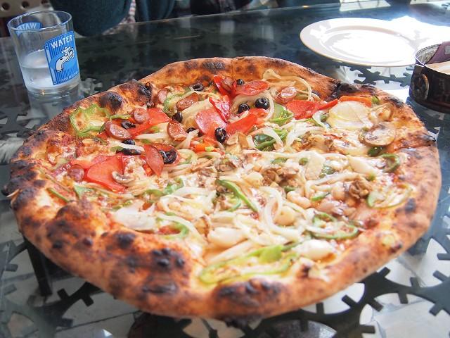 出来上がったピザは、お皿からはみ出さんばかりの大きさです。