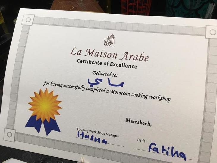 実習が終わると、アラビア文字で名前が記載された終了証書と、サプライズでなんと、小型タジン鍋がついてきました!私なんかは素直に喜んでいましたが、家族総出で参加している人達は、現地の人にあげていく、と言っていました。