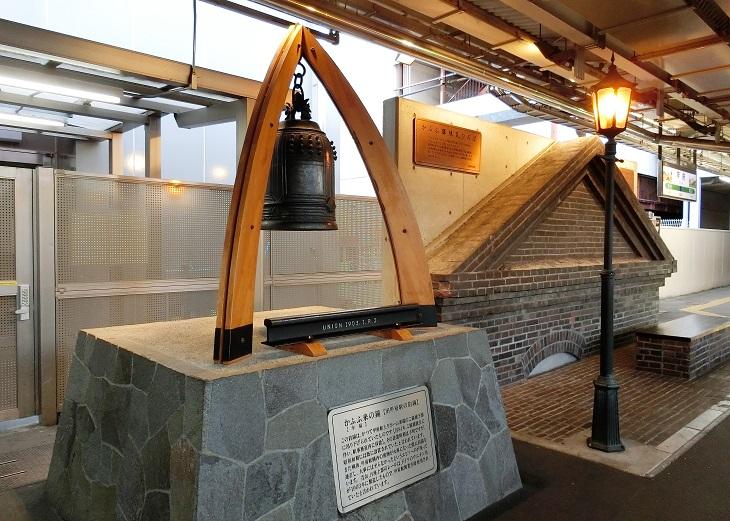 中央線JR甲府駅のホーム、1番線にある『かふふ来(こうふく)の鐘』です。