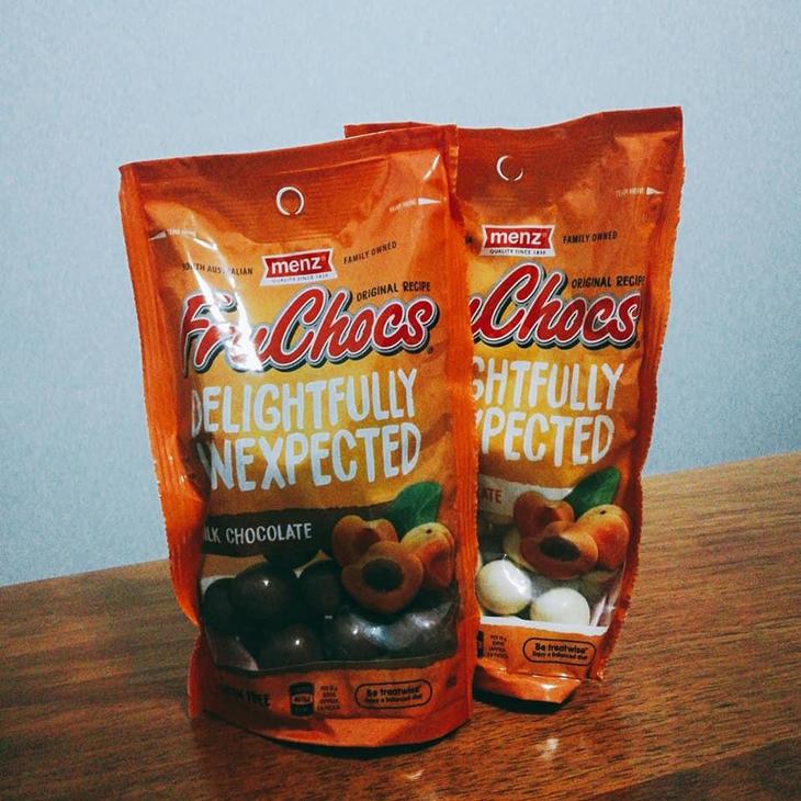 今から70年も前に製品化された南オーストラリア州生まれの「FruChocs(フルチョックス)」。こちらで見かけるチョコレートは、オーストラリア他州やヨーロッパからの輸入チョコレートが多いのですが、これだけは違います!また南オーストラリア州にはチョコレート専門店もあるのですが、この一粒チョコレートはお値段もお手頃。少し大きめのチョコボールで、中にはアプリコットやイチゴの果実が入っています。ひとくちサイズで食べやすく、小さなパッケージからファミリーサイズまで揃っています。この350gにはオリジナル・ダーク・ホワイトチョコレートの3種類の粒が入っているので3種類の味が一度に楽しめます。