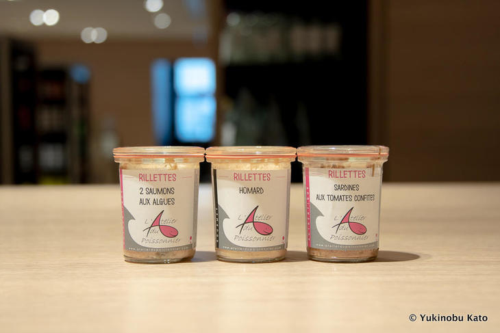 ・Atelier du Poissonnierの魚介リエット(イワシまたはサケ6.70ユーロ、オマール11.90ユーロ)