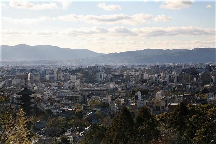 龍馬道の中腹から、振り返ると八坂の塔が見えます。