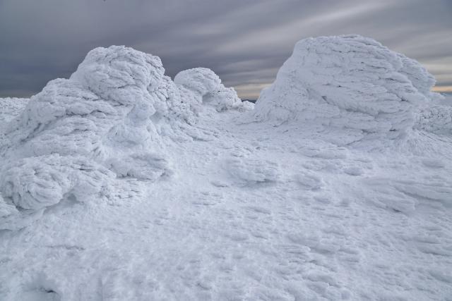 樹氷や霧氷、白き眺望等々、冬山の魅力を間近で感じます。