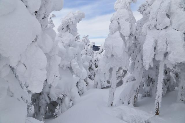 途中、成長途中の樹氷群の中を抜けてみました。