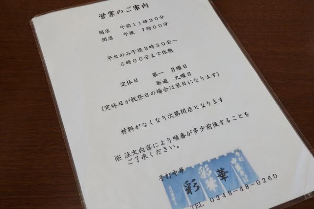 西郷村米地区にあるラーメン店「彩華」へ行って来ました。