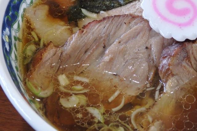 手打ちの中太麺ともよく絡み、炙りチャーシューの香ばしさが全体を引き立てています。