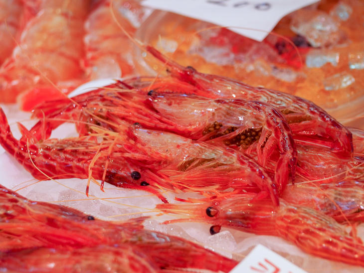 "Seafoods at Nantaru Ichiba Market in Otaru City, Shiribeshi Area"
