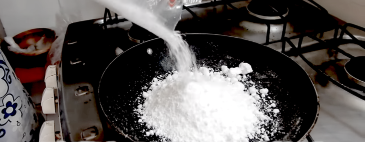作り方は①フライパンに粉を入れて熱しながらすばやく均等に並べます。