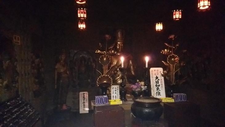 ●洞窟の奥には座像七尺の大日如来と敦煌の莫高窟第45窟の供養菩薩が復元して安置してあります(ご住職より許可をいただいて撮影しています)。