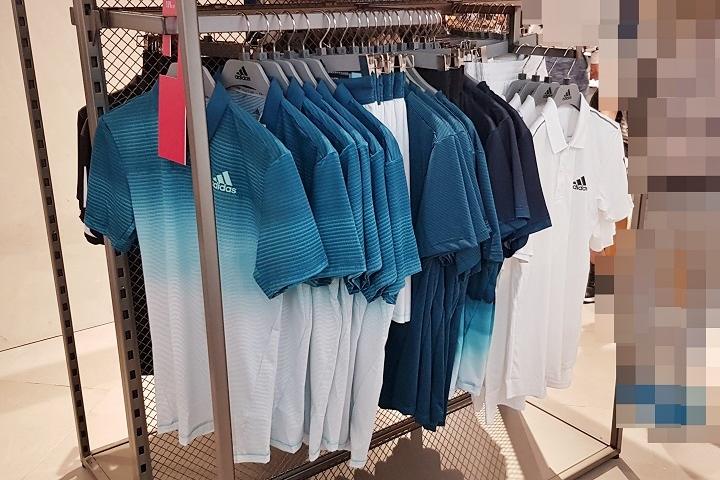 タイ王国バンコクの日本人街にあり、プロンポン駅下車すぐの高級百貨店「エンポリアム(Emporium)」2Fにあるテニスウェア売り場では、全く同じ色の販売はなく、色味が少しだけ異なりますが、同様の、爽やかなブルーのグラデーションが印象的なタンクトップ(1,600バーツ=約5,620円)とスコート(1,600バーツ)のテニスウェアはまだ販売中でした。また、メンズコーナーには、白いズボン、上着は濃いグラデーションと薄いグラデーション、そして襟つきのシャツの3種類の品ぞろえでした。(2月3日時点)。