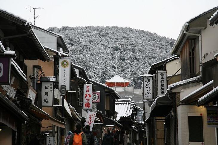 雪の日の東山は、モノトーンの世界です。