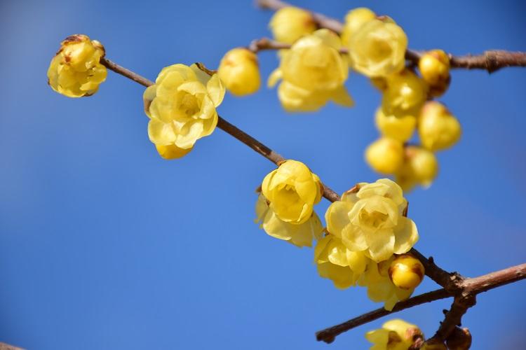 蝋でできたかのような花を咲かせるロウバイ。いい香りを漂わせて咲き乱れていました。植物園の方がおっしゃっておられましたが、春は黄色い花から咲き始めるのだそうです。菜の花、ロウバイ、レンギョウ、マンサクなど。そして、ラベンダーなどの青い花に移っていくのだそうです。
