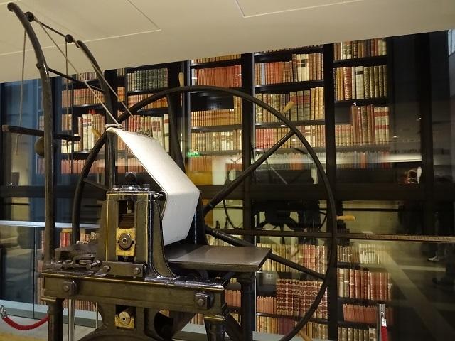 書物や資料だけでなく、古い印刷機や書類チェストなどが展示されているかと思えば・・・。