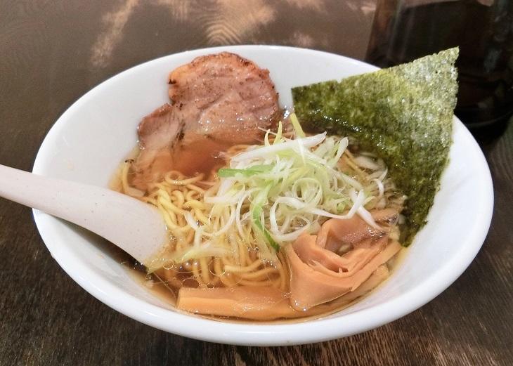 上の写真は『麺屋はな道』の「醤油はな道(税込み750円)」。すっきりとした味わいの醤油ラーメンです。2種の醤油をブレンド。昆布、貝ヒモなどで出汁をとっているとか。コクがあります。麺はあっさり醤油にしては太めかな。それがまたコクのあるスープと合っています。大き目の炙りチャーシューはとろけるし、白髪葱がのっているとテンション上がります。直球勝負の美味しさです。