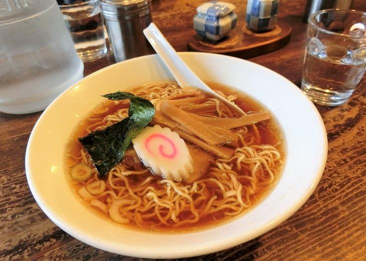 真ん中にのったナルトがなつかしい雰囲気をかもし出していますね。老舗ならではの昔なつかしい味です。まろやかな醤油のスープにかたすぎずやわらかすぎないちぢれ麺。汁に埋まったチャーシューは薄めの味つけがちょうどよく、メンマがやわらかい!