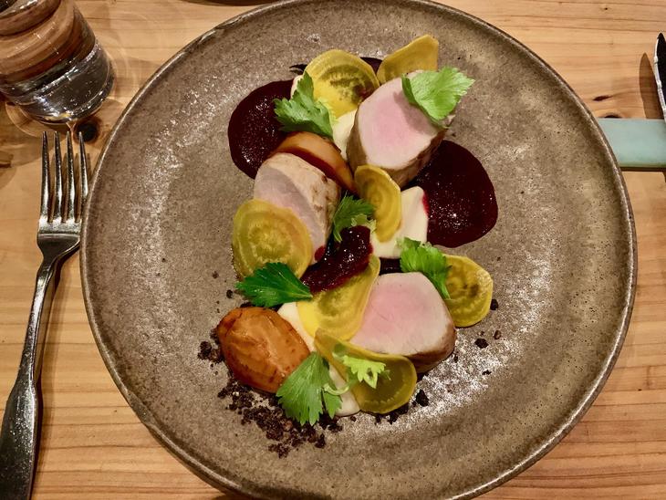 んで、二人できたので、メインをそれぞれ、デザートは一つ、アペタイザーを3品頼んだんだよね。 本来なら5ドルのブレッドもついてるので、「この値段、ほんまにサンフランシスコかいな!?」という出血大奉仕価格のレストランだ。 『Roasted Turnips($13)』 『Cabbage($13)』 キャベツなんて貧相な感じと思いきや柔らかい葉っぱに砕いたナッツやベリー系の食感がいい、焼いた蕪が出てくるのかと思えばそこにお出汁を含ませて日本人的には懐かしい。 "ダシ・DASHI" は既に料理の基本になってる。