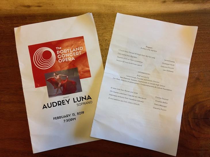 こちらは、昨晩、ルイス&クラーク大学のチャペルで開催されたソプラノオペラ歌手、オードリー・ルーナ(Audrey Luna)のコンサートに行ってきました。主催は、ポートランドの非営利団体「ポートランド・コンサート・オペラ(Portland Concert Opera)」。