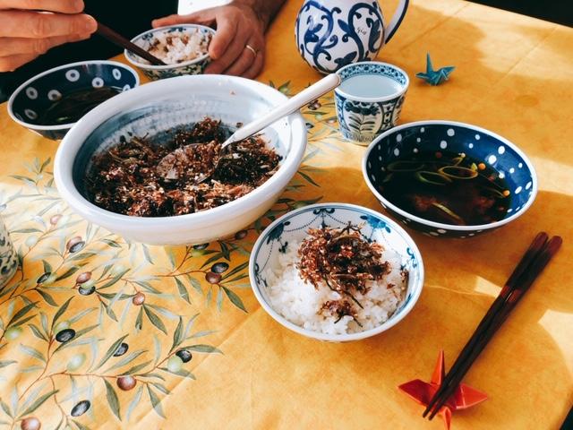 自家製ふりかけを作ろう。保存食用にと大量に作ってみた。一汁三菜ならぬ一汁ふりかけランチ。お味噌は、大麦こうじ仕込みの九州の麦みそで。こんな質素なごはんが贅沢にまで感じるなんとも幸せなイタリア田舎暮らし。