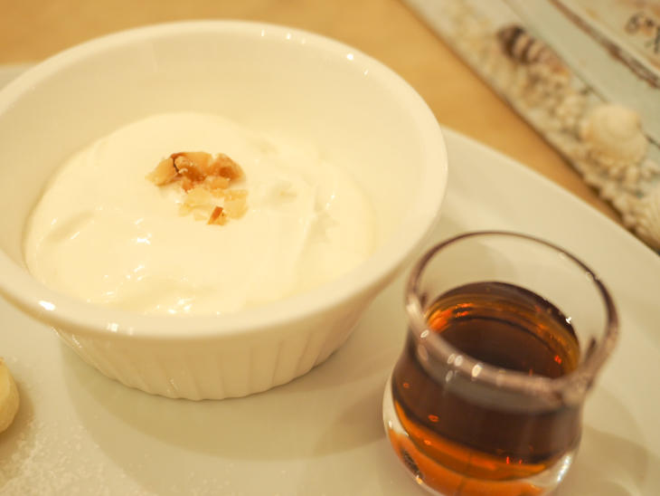 プレートに乗っているメイプルシロップをかけていただくのもおすすめ。