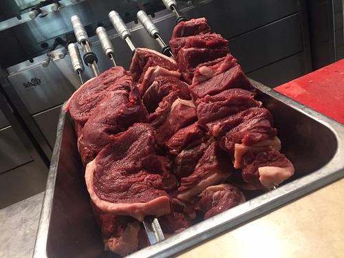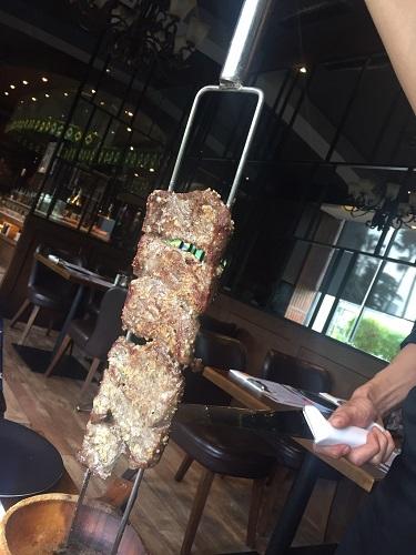 やっぱり大きな串刺しの肉を目の前で切られるとテンションあがりますね!