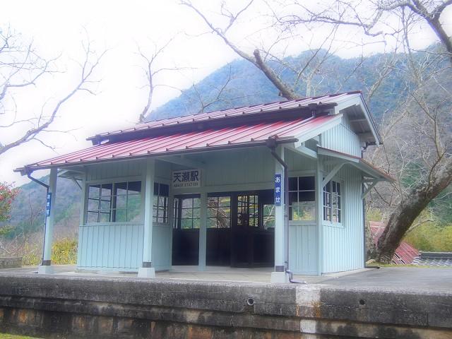 天瀬駅周辺は山あいに囲まれ、今の季節は椿を楽しむことができます。