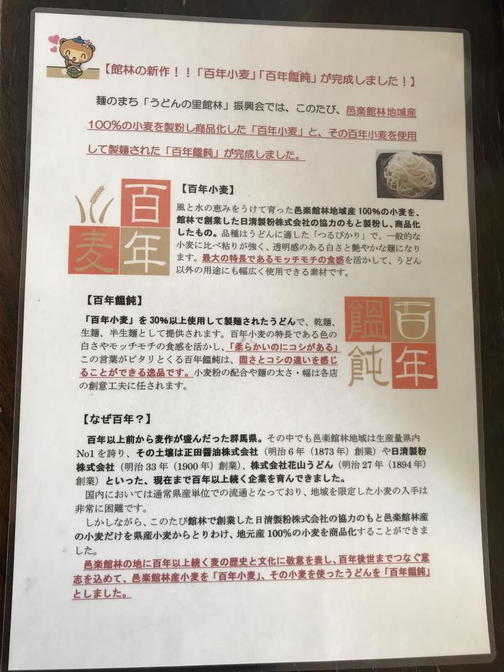 今日ご紹介するのは、邑楽館林産小麦「百年小麦」で作った「百年饂飩」を食べさせてくれるまるなかうどんです。百年以上前から麦作が盛んだったことと、日清製粉、正田醤油などうどん作りに関係する企業があるなど「旨い」の条件は整っています!