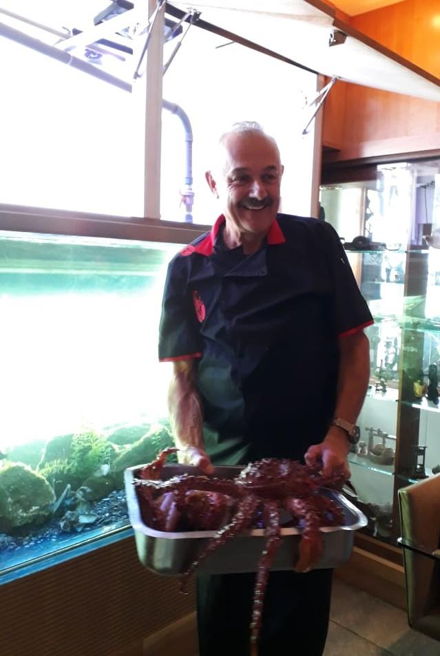 2018年現在、オーナー、そして料理長。しかし、実務細部は娘に任せ、そしてお店の前に広がるビーグル水道の最高の
