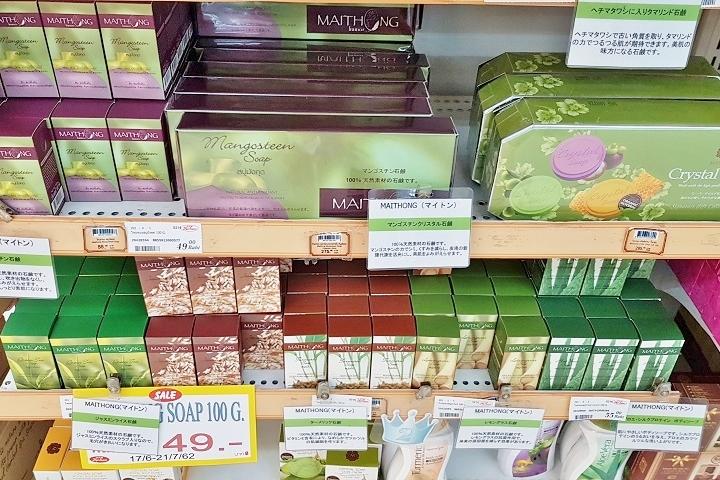 マダムヘンは、Terminal21 ASOK(Terminal21 ASOKの公式サイトはこちら。マダムヘンの公式サイトはこちら。BTSアソーク駅直結)のLG階の専門店(営業時間10時~22時ですが、途中1時間程スタッフ不在の場合があります。他の専門店の場所はこちらでご確認いただけます)で購入しています。マダムヘンの石鹸は、専門店で購入すると、スーパーと違って、商品のバリエーションが豊富で、お土産やプレゼントにも適した商品がずらりと並んでいます。また、嬉しいことに、初めて購入した時から現在に至るまで、リクエストしなくても、パッケージの後ろに表示されている金額より大幅値引きがあります。もちろん、購入前に、値段を聞けば、値引き後の金額を確認できます。さらに、おまけの商品をつけてくれることも多いです。