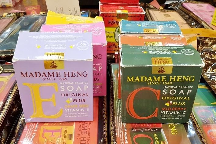 石鹸の好みも個人差があると思いますが、私がよく買う石鹸は、「マイトン(MAITHONG)」と「マダムヘン(Madame Heng)」の石鹸です。いずれもリーズナブルでひとつ約50バーツ(2019年現在)で購入できます。