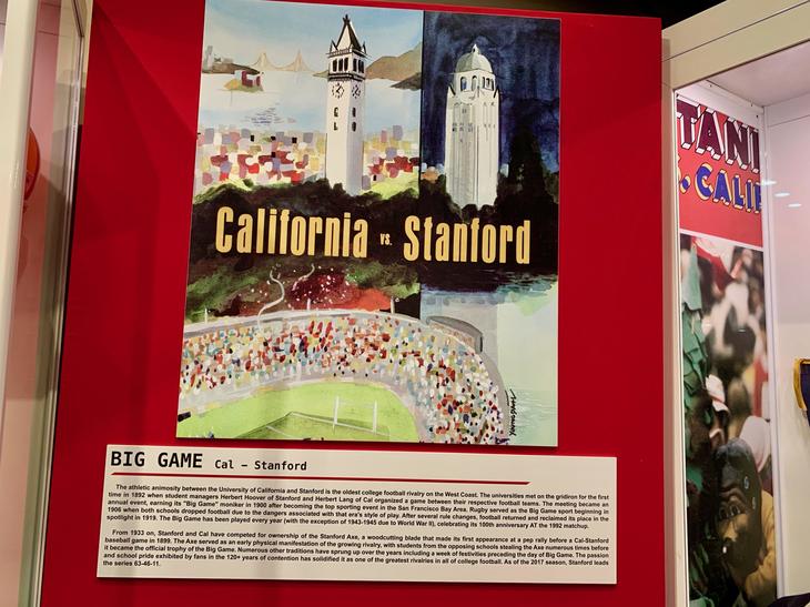 カレッジフットボールの『ビッグ・ゲーム(BIG GAME)』と言われている UCバークレー校(CAL)対スタンフォード大学(STANFORD) です。カレッジフットボールも紹介されていた。 OB意識が強く皆出身校のファン "箱根駅伝" 状態だ。また「カレッジこそ真のフットボール」と言い切る人もいるくらいカレッジフットボールは、根強いファンが多いです。両校どっちが勝っても負けても大騒ぎ、バークレーではその土曜日の夜はことさらスポーツバーは殺気立っていまして、多分 "早慶戦" と似ているのではないかと想像します。カレッジの方が "高校野球" っぽくて楽しいらしいですよ。両校からプロに進む人も多いので、「学生の時から知ってるよ〜」とちょっとした自慢にもなり、とにかくコアなファンが多い。