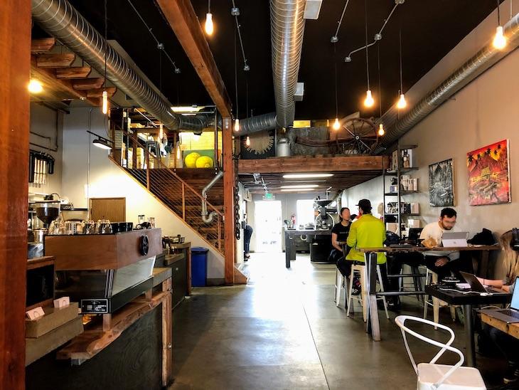 フライホイール・コーヒーロースターは、サンフランシスコでも人気の小さな焙煎機がカフェ内にあるスモールバッチローストを行うカフェです。