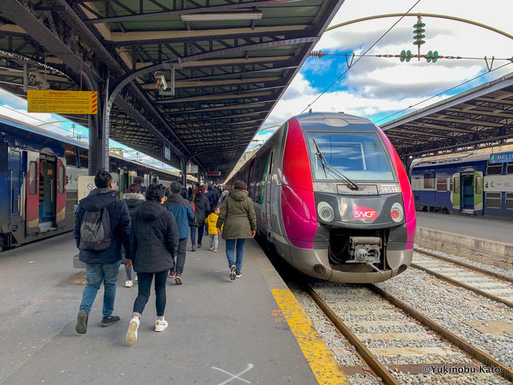モーへ行くのにパリ側で起点になるのがパリ東駅です。ここからパリ市内と郊外をつなぐトランシリアンP線(Transilien P)に乗ります。 P線はパリ東駅から主にパリ郊外東側に伸びている路線です。モーへ行くためにはシャトー・ティエリ(Château Thierry)行きに乗ります。