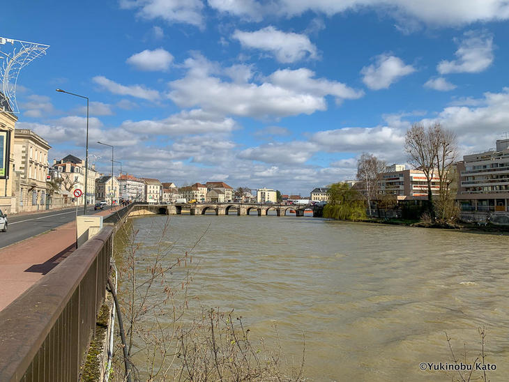 市場地区とマルヌ川を挟んで逆側(つまりマルシェ橋を渡る前の対岸の地区)には13〜14世紀のサン・ティティエンヌ大聖堂とル・ノートルが設計した旧司教館庭園があります。大聖堂は駅からも見えるため、それを目印に進めば着きます。