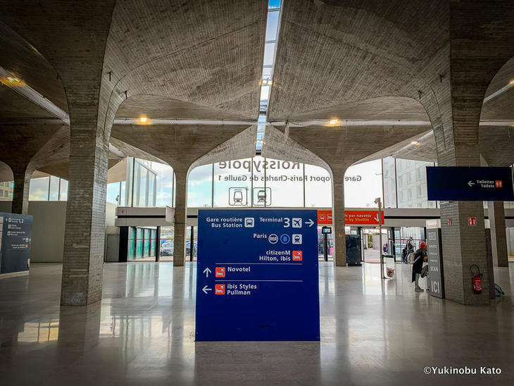 パリのシャルル・ド・ゴール空港では、JALやエールフランスが発着するターミナル2にシェラトン・パリ・エアポートホテル&コンファレンスセンターが入っているほか、CDGVAL(シャルル・ド・ゴール空港内のターミナル間をつなぐ交通システム)ターミナル3ロワシーポール駅(RER B線のシャルル・ド・ゴール空港ターミナル1駅が併設)にホテルやスーパーマーケットが集まっています。