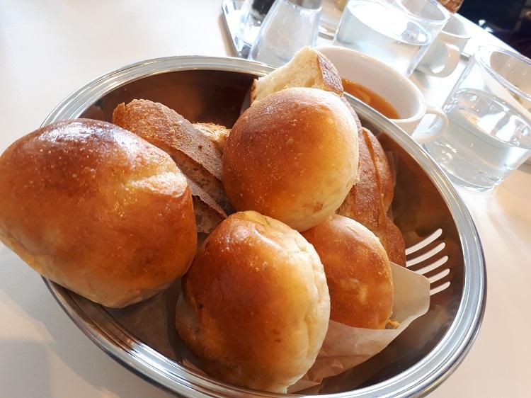 ランチセットはベーカリーで焼いたパンが食べ放題。スタッフの方がお皿に盛ってくれます。このパンがとても美味しいので、メインが来る前に食べ過ぎないようにして下さいね。