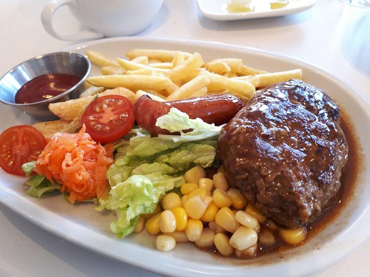 お子様ハンバーグランチ。お子様ランチは安いぶん手抜きな感じのお店が多く、我が子はあまり食べないのでオーダーすることがほとんどないのですが、こちらのハンバーグは美味しいとしっかり食べておりました。