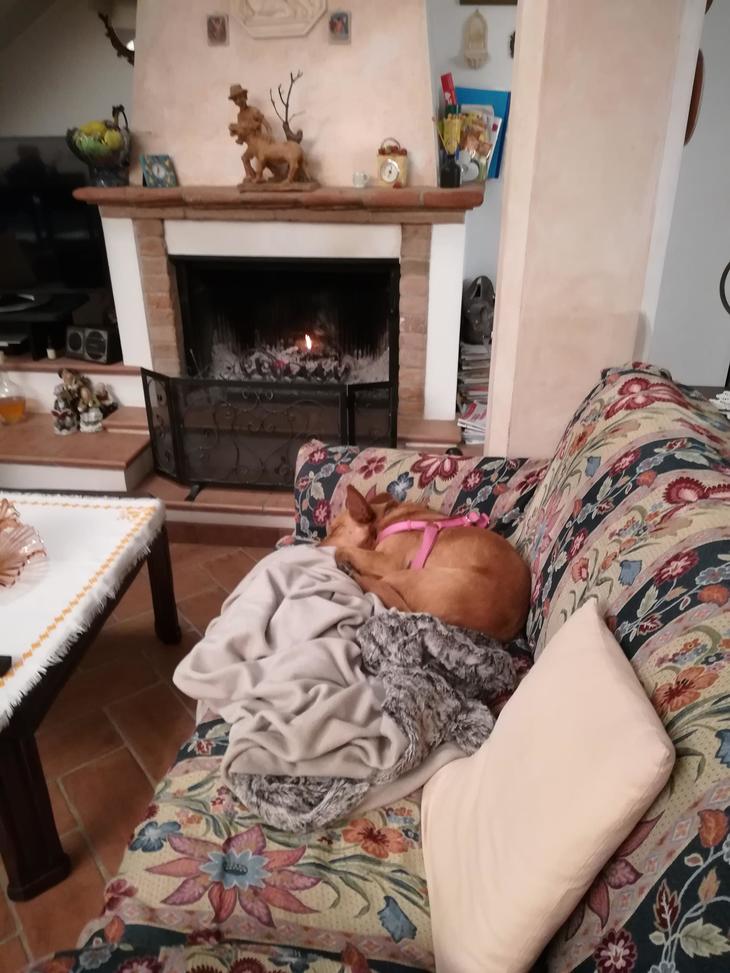 愛犬ピッパも疲れたのか、暖炉のソファーで一眠り。。。