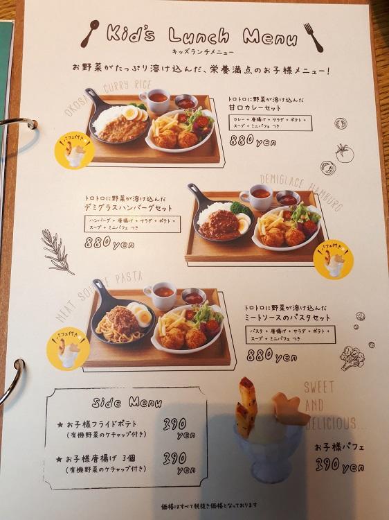 オーダーはしていませんがキッズメニューもありますので、お子様連れでも安心です。子供用椅子も用意されていました。
