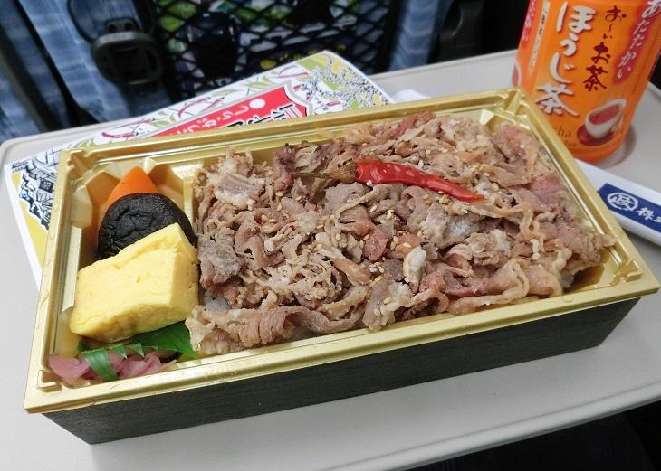 小淵沢の駅弁屋さん『丸政』の「新宿焼肉弁当(税込み1,100円)」見つけた! 内藤とうがらしのお出汁で炊きこんだご飯は旨みが濃いなあ。でも全然辛くないんですよ。