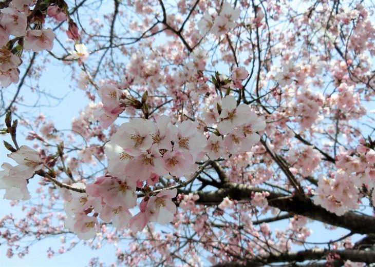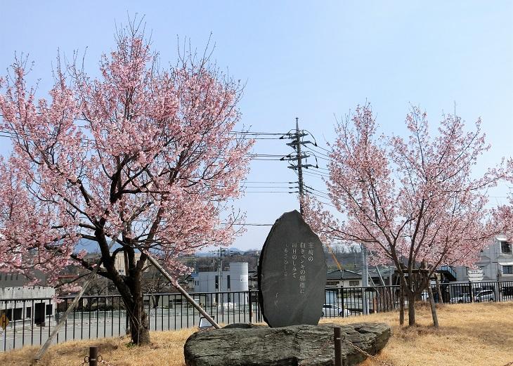 JR中央線韮崎駅前ロータリーの桜は、毎年開花が早く、今年ももう咲いています。