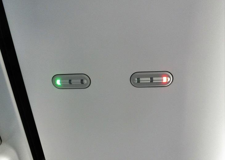 えっと、わたしの席は窓際だから、あ、ちゃんとグリーンになってる。指定済みの席の上にはグリーンのランプ。空席の上には赤いランプ。もうすぐ指定した人が乗ってくる席には黄色いランプが点灯します。