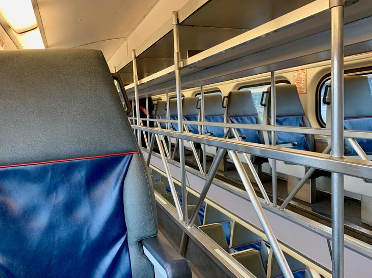 二階建ての上は景色がよく見えるが、ゆったり座りたい場合は下がお勧め。