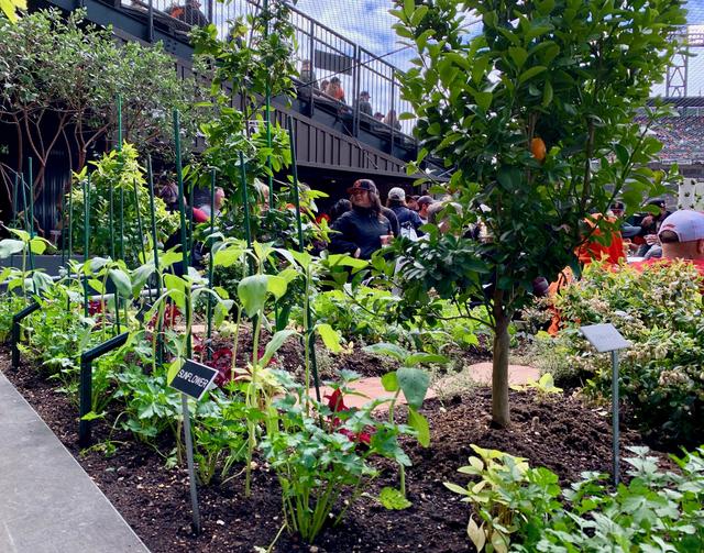マリーナゲートの階段を降りると『ザ・ガーデン(The Garden)』 エディブルヤードに囲まれここが球場かと思うほどの異次元空間。 さすがオーガニックな美食都市サンフランシスコだ。