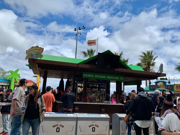 お父さんとしては野球観戦にはビールやろ! オラクルパーク内各フードブースにはユニークなクラフトビールがあり、ビーラーにはたまらない野球場だ。 シエラネバダ(Sierra Nevada)はサンフランシスコから車で2時間くらい北に位置する学生の街チコ(Chico)のビール。 昨年の山火事では危うく難を逃れた。 1杯$14.75 とべらぼうに高そうだけど、NBAゴールデンステートウォリアーズの本拠地オラクルアリーナに比べると気持ちお安いざんす。 ちなみに球場内クラフトビールはどこも大体そんな値段なの。