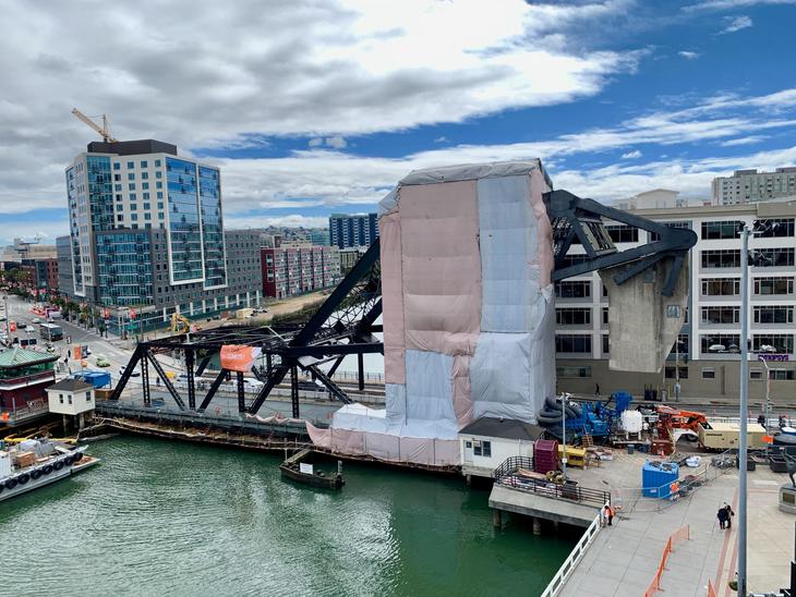 レフティオドウェル(3rd Bridge)橋は、補修工事中でもちゃんと「Play Ball」の横断幕を掲げて開幕戦のお祝いしてる。 立ち見じゃ相当高いけどお祭りだと思えばいいか。