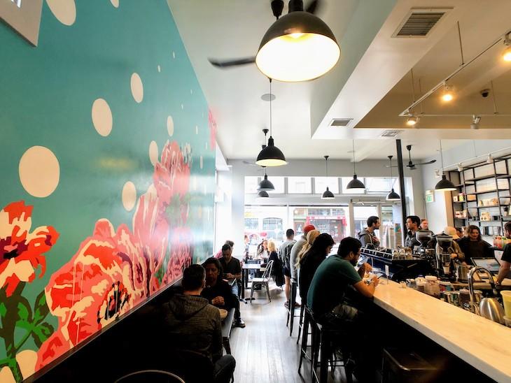 サンフランシスコらしいミニマルなカフェの店内は、オープンキッチンとなっており、自然光の入る心地よい空間。こちらではミディアム・ローストに焙煎されたコーヒー豆でこだわりのエスプレッソドリンクを楽しめる他、オリジナルブレンドのハーブティーやスムージーなども楽しめます。