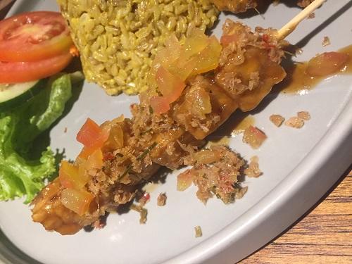 Sateはテンペでした、かかっているソースが酸味があってさっぱり、おいしい。